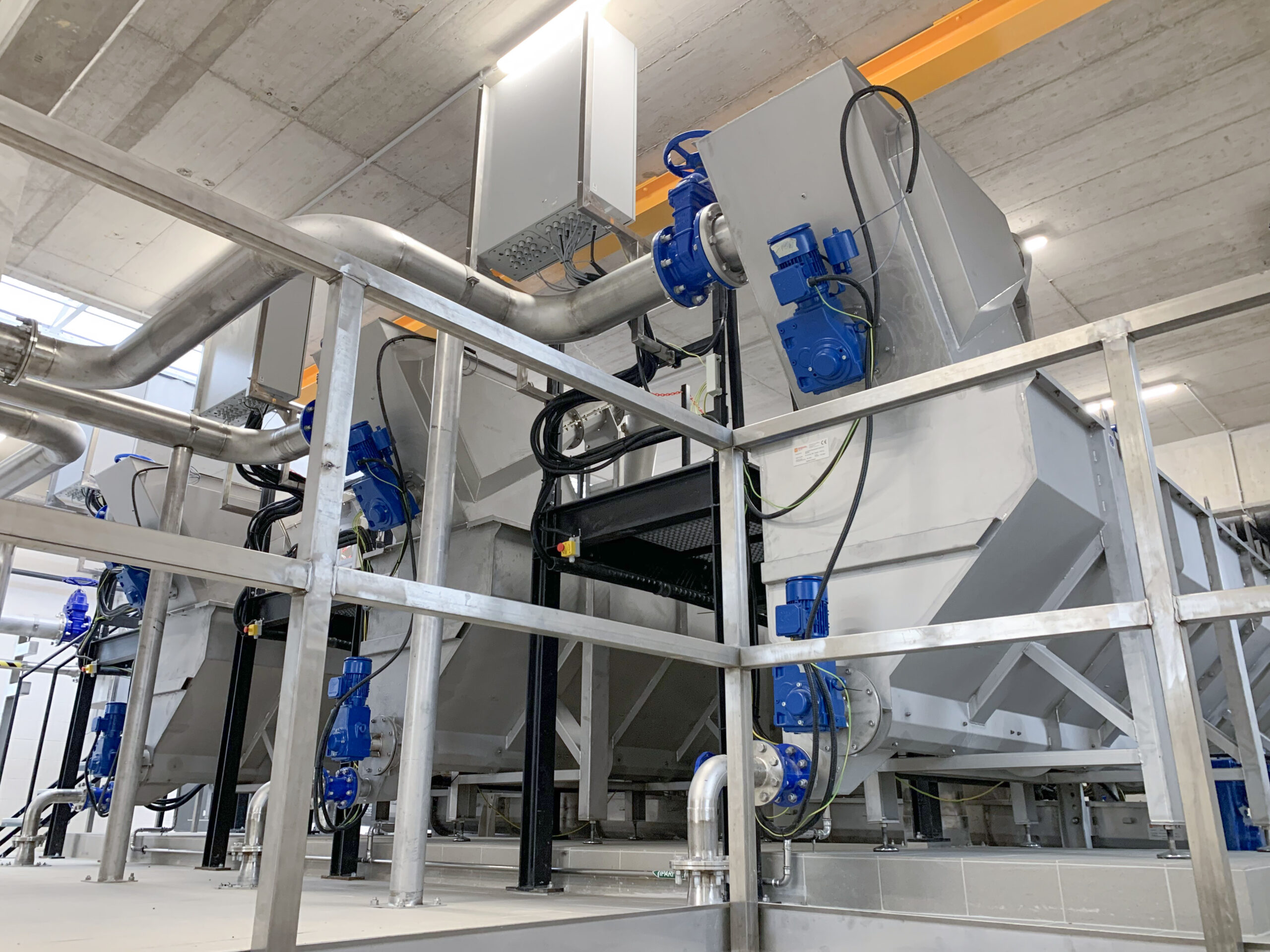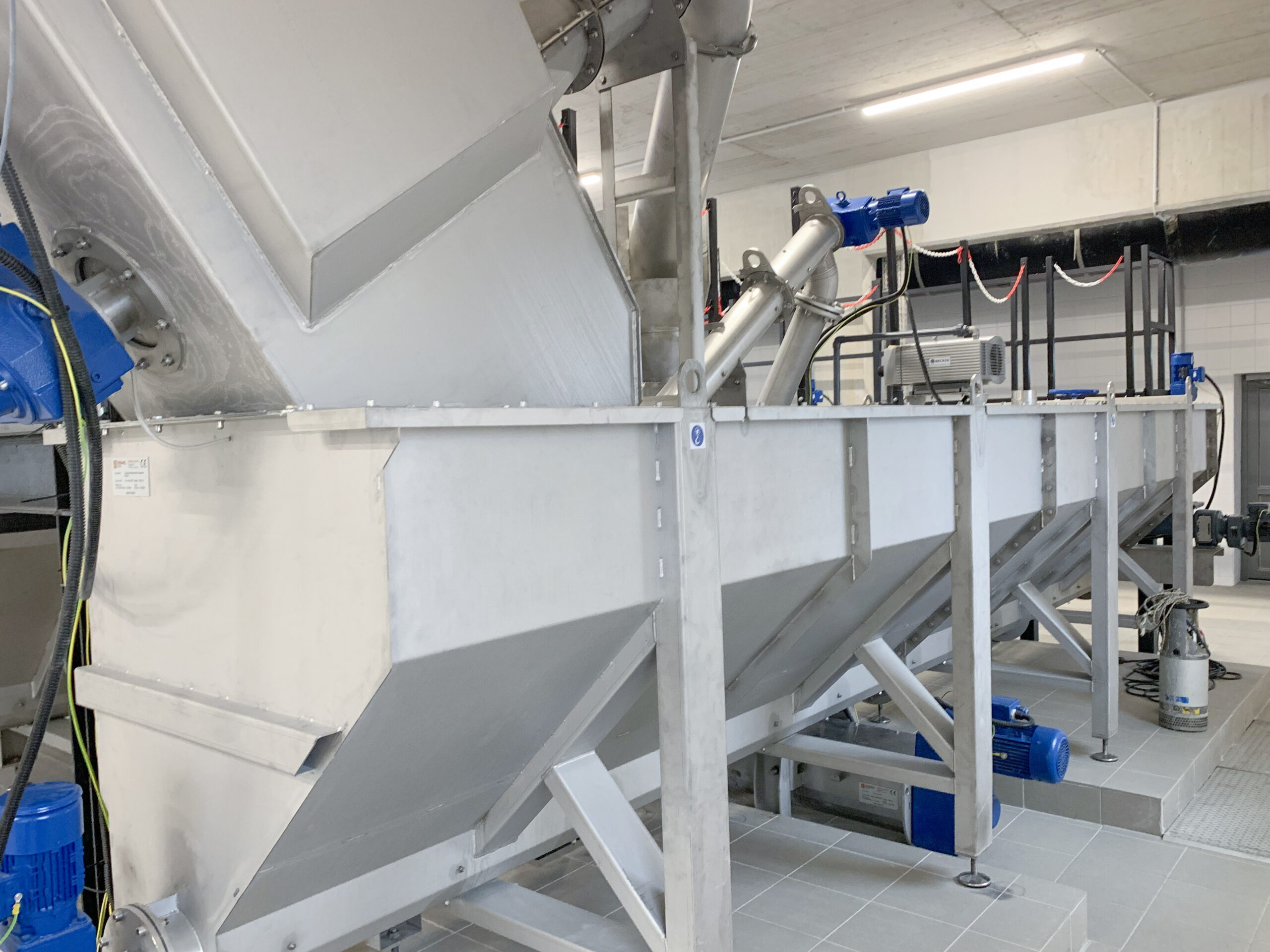 Łączna długość zainstalowanych przenośników wynosi 32 metry. Służą one do transportu oraz załadunku odwodnionego osadu.